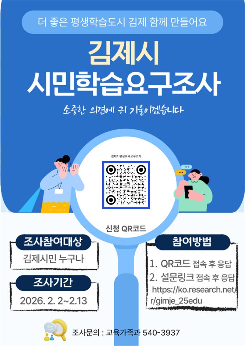 김제시 시민학습요구조사 참여 안내